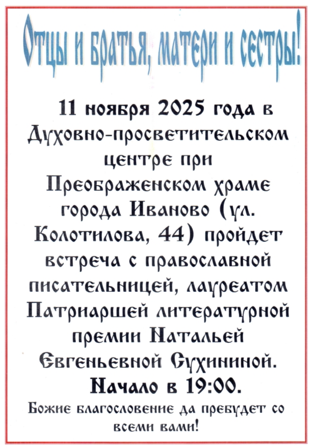 - Встреча с православной писательницей Н.Е.Сухининой.